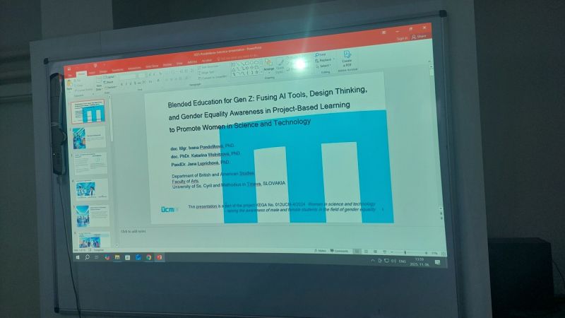 Prezentácia bola súčasťou národného výskumného projektu KEGA č. 012UCM-4/2024 – Ženy vo vede a technike – zvyšovanie povedomia študentov a študentiek v oblasti rodovej rovnosti. Príspevok predstavil metodologické princípy a predbežné výsledky implementácie blended learningu medzi študentmi generácie Z. Zameral sa najmä na kreativitu podporovanú umelou inteligenciou, projektové vzdelávanie a rozvoj povedomia o rodovej rovnosti, s cieľom podporiť zapojenie žien vo vede a technike.