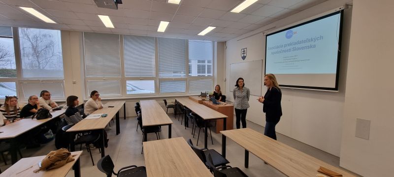 V stredu 12. novembra sa konala prednáška s názvom Prekladateľ a prekladateľská spoločnosť – forma a výhody spolupráce; príležitosti v dobe AI. Manažérka firmy Mgr. Katarína Absolonová predstavila činnosti agentúry, ako aj možnosti stáže a praxe pre študentov magisterského stupňa AJKK štúdia.