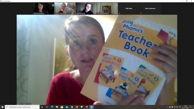 Dňa 16. 12. 2020 sa uskutočnilo online stretnutie študentov 3. ročníka odboru učiteľstvo s pani Vierou Machálkovou, ktorá je zakladateľkou, priekopníčkou a trénerkou hravej metódy Jolly Phonics na Slovensku už od roku 2010. Metodika Jolly Phonics pochádza z Veľkej Británie, odkiaľ sa rýchlo rozšírila po celom svete a svojou efektivitou dosahuje pri výučbe angličtiny vynikajúce výsledky.
