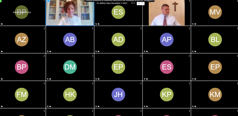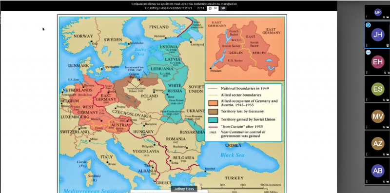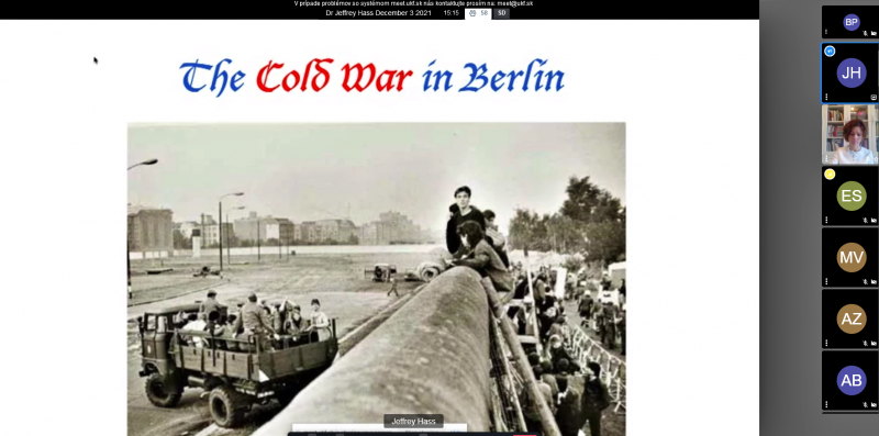 3.12.2021 sa študenti 2.ročníka BcD UAP spolu so svojou vyučujúcou zúčastnili interaktívnej prednášky Dr. Jeffreyho Hassa z Ave Maria University in Florida, ktorý od roku 2014 pôsobí ako člen Franciscan University's Austrian Program. Názov prednášky: Cold War in Berlin. Podujatie organizovala UKF Nitra. Konalo sa v online priestore.