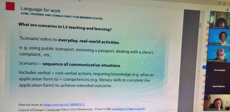 PhDr. Ingrid Cíbiková, PhD. a PhDr. Božena Petrášová, PhD. z Katedry anglistiky a amerikanistiky FF UCM sa 8.10. a 26.11.2021 zúčastnili online workshopu pod názvom Language for Work. Workshopu sa zúčasnili ako členky riešiteľského kolektívu medzinárodného projektu s názvom Language for work | How to support work-related language learning for adult migrants. Projekt koordinuje ECML (Európske centrum pre moderné jazyky), ktoré je inštitúciou Rady Európy, v spolupráci so Štátnym pedagogickým ústavom, Bratislava a s UKF v Nitre. Riešiteľmi projektu sú experti z rôznych krajín sveta. Koordinátormi projektu sú pani Matilde Grünhage-Monetti, Nemecko, a pán Alex Bradell, Veľká Británia. Národnými kontaktnými osobami projektu sú pani PhDr. Denisa Ďuranová, ktorá v projekte zastupuje Slovenskú republiku ako národná koordinátorka Európskej agentúry pre špeciálne a inkluzívne vzdelávanie, a doc. Edita Hornáčková Klapicová, PhD. z UKF Nitra.